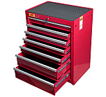 7 ящиков. С боку расположен шкаф с распашной дверцей, которая открывается с помощью пластиковой ручки и замка. Имеются 2 полки, расположенные внутри шкафа, можно отрегулировать по необходимости. Дугообразная боковая ручка. Выдвижные ящики оснащены нескользящими вкладками. В комплекте предусмотрен верхний коврик из EVA, предназначенный для удобного хранения различных мелких деталей. Роликовые направляющие с функцией автоматического возврата обеспечивают плавность открывания/закрывания ящиков.