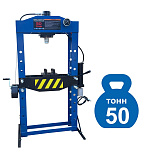 Усилие 50 тонн. Пресс гидравлический. Привод: ручной. Две скорости подачи пуансона. Первая скорость для быстрой подачи штока к рабочей поверхности, вторая (медленно) для выпрессовки. Применяется для запрессовки подшипников, деталей машин и механизмов в гаражах, автосервисах и СТО.