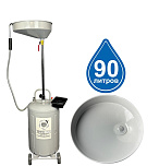 Емкость для слива и откачки масла с предкамерой для контроля количества поступающего масла, емкость бака 90л., с подъемной ванной емкостью 15 л., 6 заборных щупов (пневмопривод), производительность 1,5-2 л/мин , максимальная высота 1850 мм, давление слива масла 0,5 бар, вес 32кг.