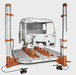 Для ремонта деформированных рам и кабин грузовых автомобилей. Функциональные возможности системы позволяют легко обнаружить такие повреждения как: деформация лонжеронов рамы (изгиб), перекос лонжеронов рамы (“винт”), параллельное смещение лонжеронов (“параллелограмм”), перекос мостов смещение, контрольных точек кабины. Видеокамеры трекера фиксируют положение указки и система моментально отображает координаты измеряемой точки.
