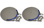 Комплект поворотных кругов (платформ) используется при выполнении работ на стендах сход-развал. Габариты платформы по основанию 370х375х50 мм. Нагрузка на поворотные круги 2000 кг. На платформах присутствуют шкалы и стрелки.