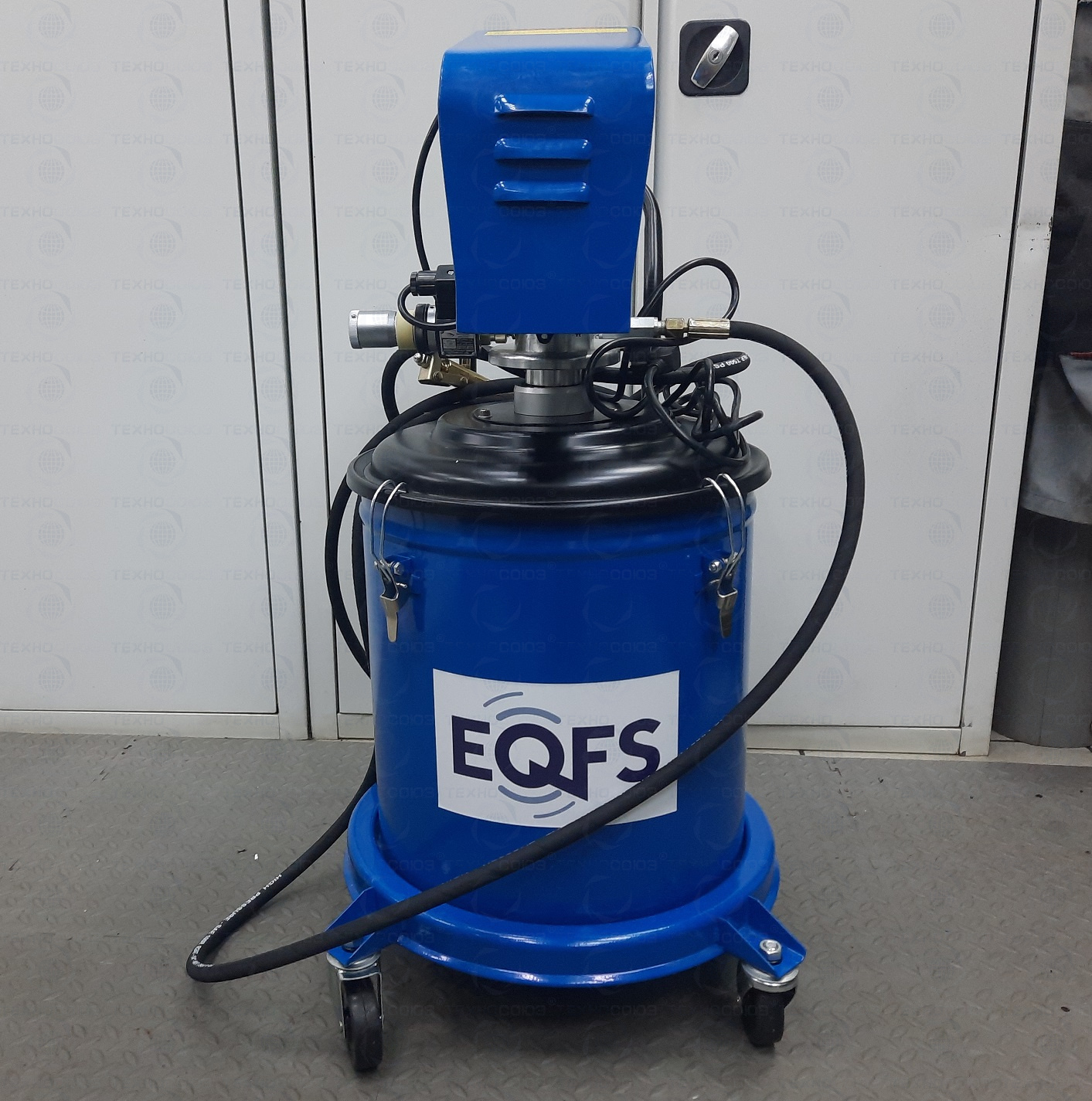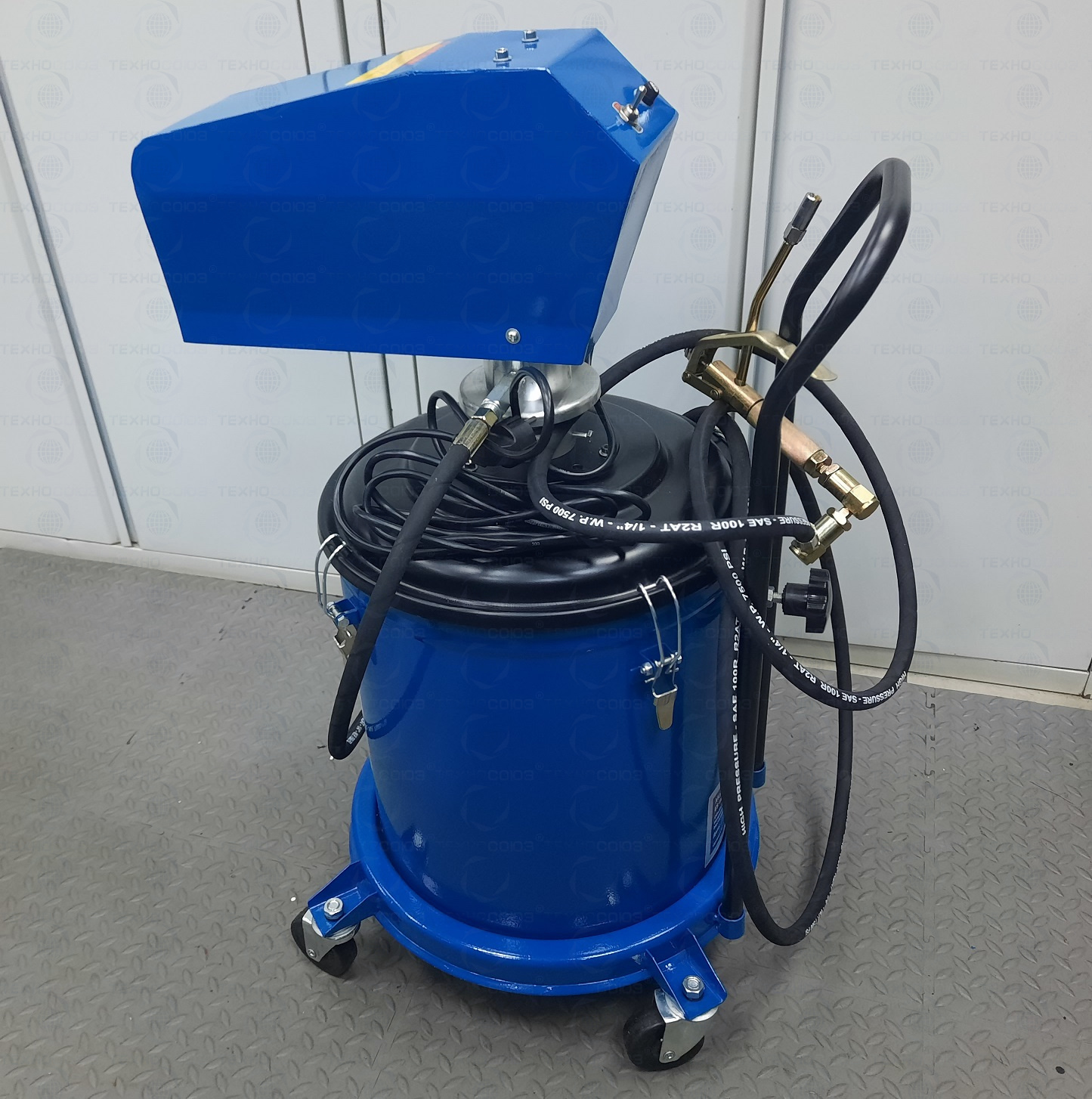 Солидолонагнетатель для консистентной смазки, установленный на колесах, имеет легкий вес и экономичную конструкцию для удобства перемещения и эксплуатации.