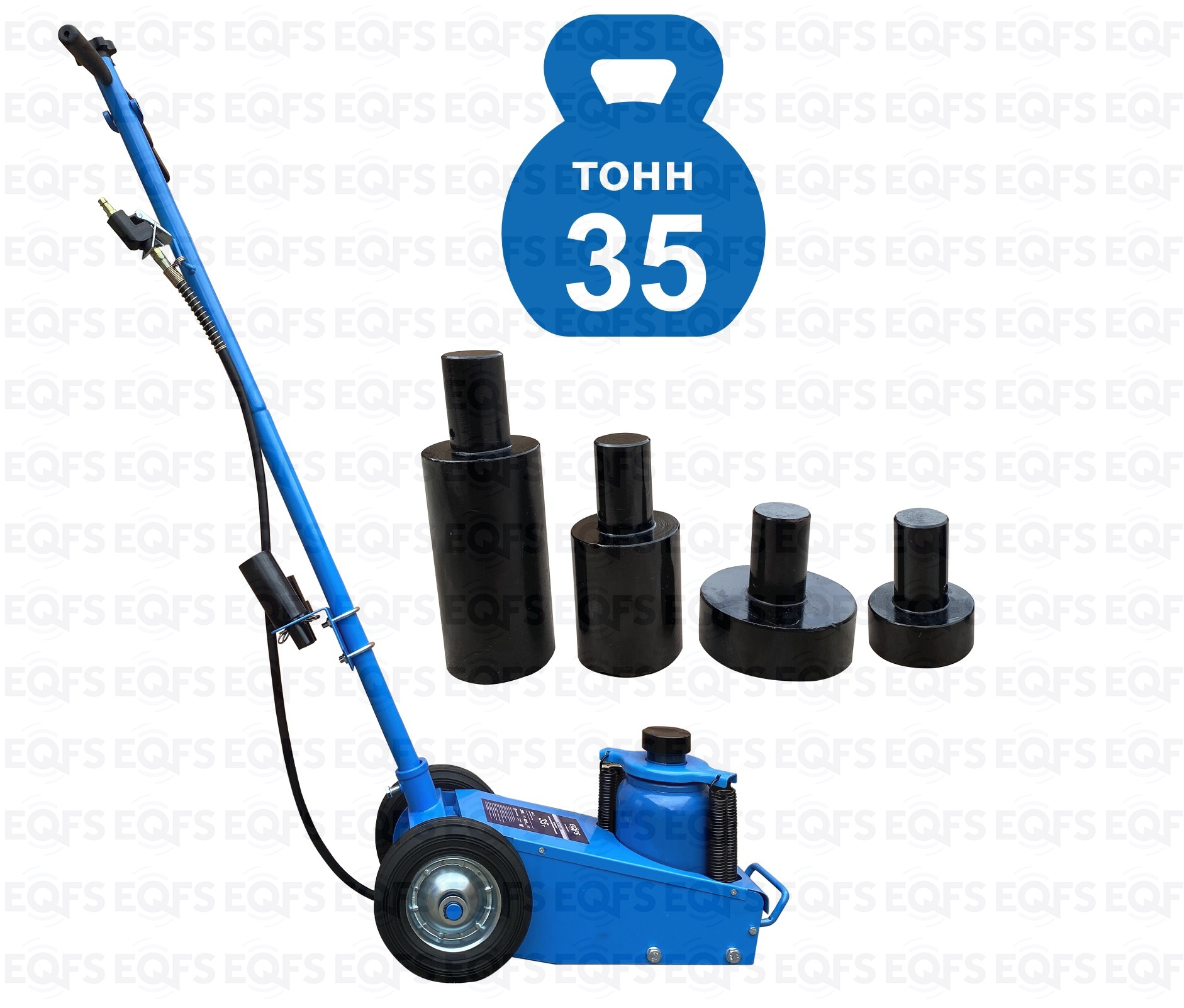 Пневмогидравлический домкрат Г/П - 35 тонн.Прочная и надежная конструкция. Мобильный. Закаленный шток цилиндра обеспечивает надежность работы. 4 возвратные пружины для быстрого опускания домкрата. Разъем для подключения пневмосети. Клапан для быстрого опускания домкрата. Фиксатор угла наклона рукоятки. Угол наклона рукоятки 0-90грд. Удобная ручка для переноски домкрата. В комплекте 4 удлиняющих адаптера: 25 мм, 25 мм, 50 мм, 100 мм. Высота подхвата: 250-495 мм с адаптером 595 мм.