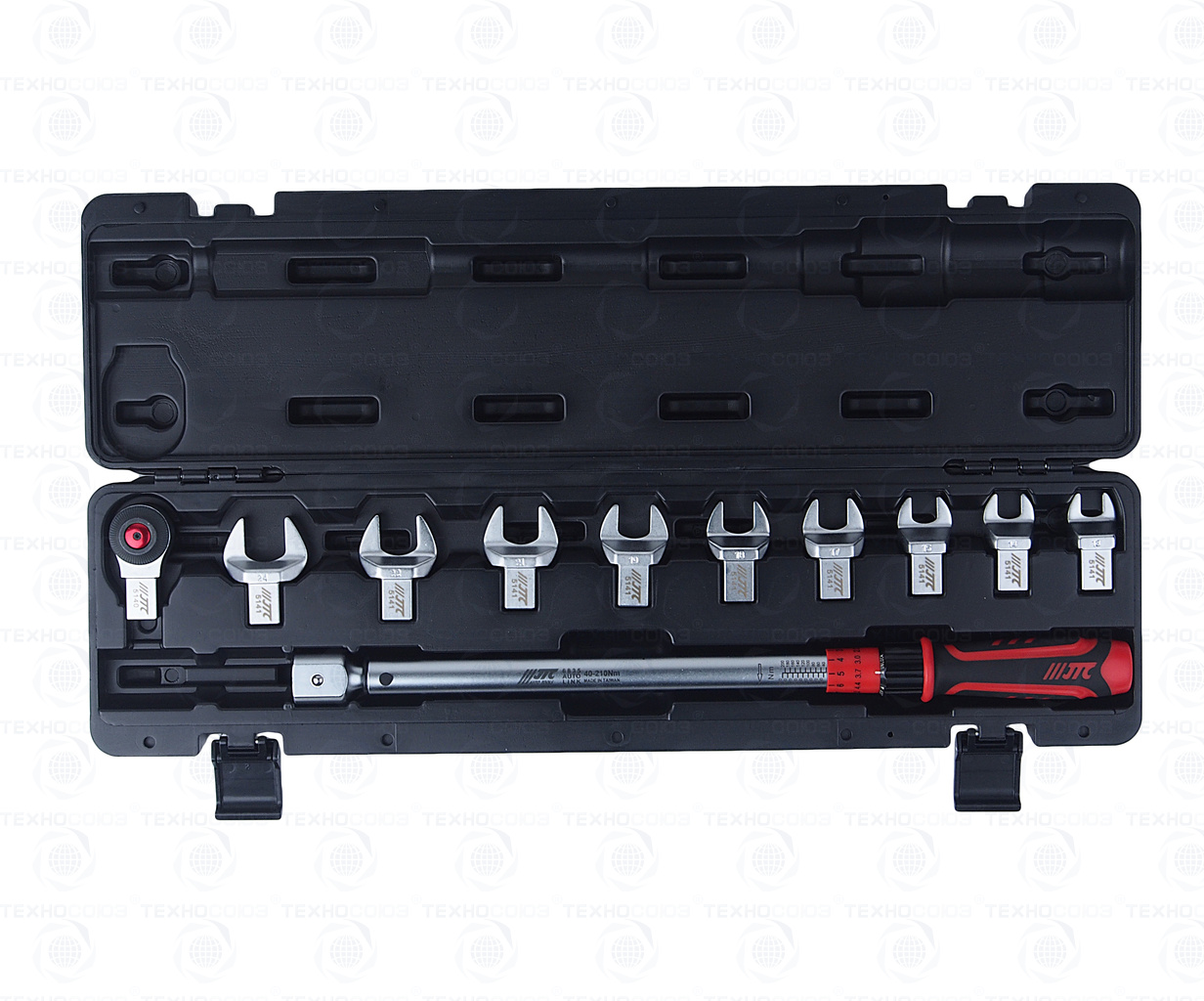 КЛЮЧ ДИНАМОМЕТРИЧЕСКИЙ 40-200НМ 14-18ММ С НАСАДКАМИ 13-30ММ 11 ПРЕДМЕТОВ JTC-6835K