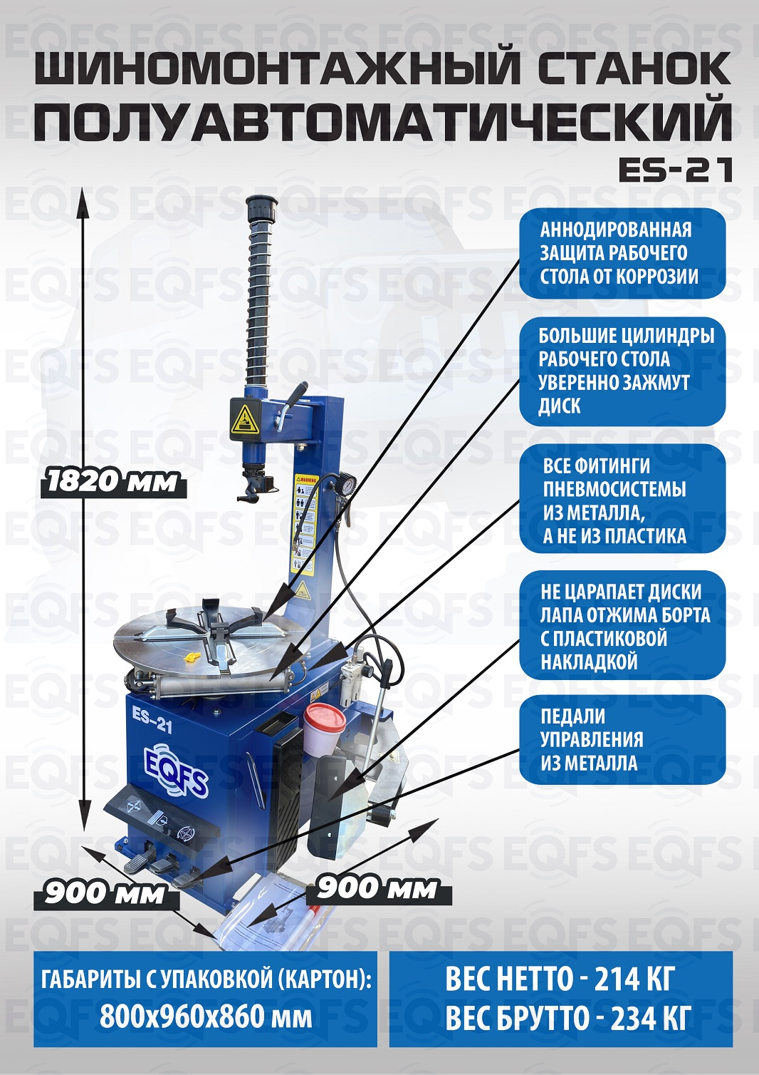 Комплект ES-21 Шиномонтажный станок полуавтомат + ES-550 Балансировочный станок