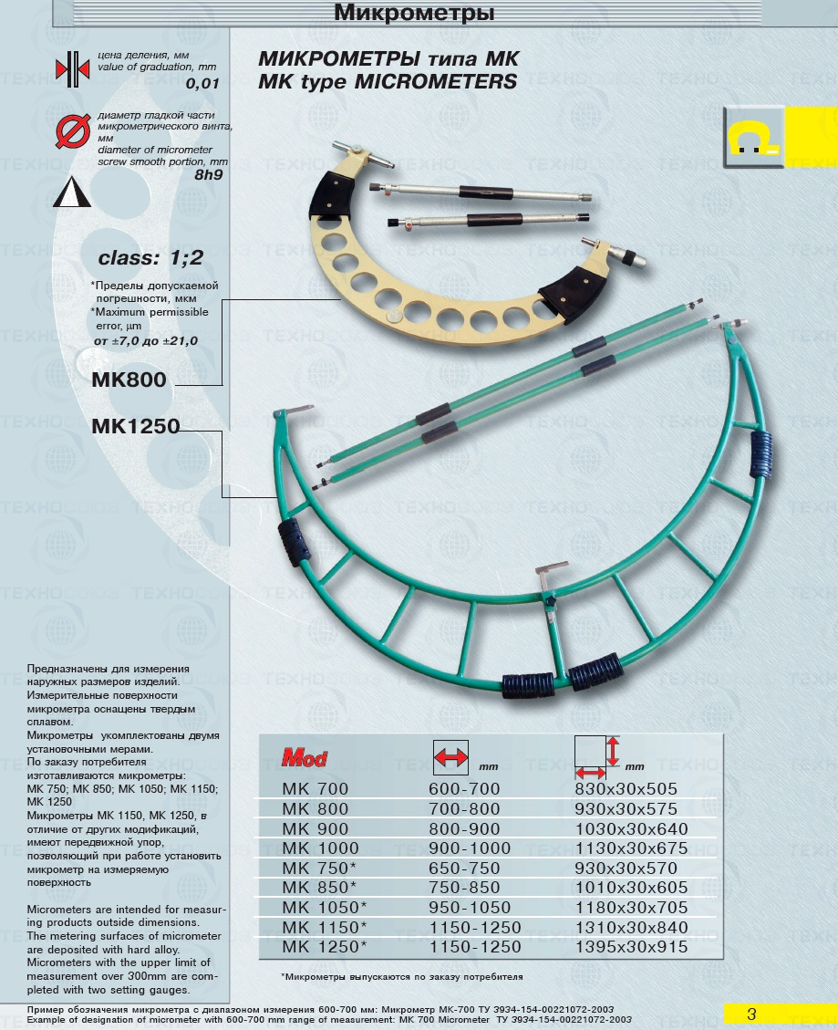 Микрометр гладкий МК 1150 кл.1