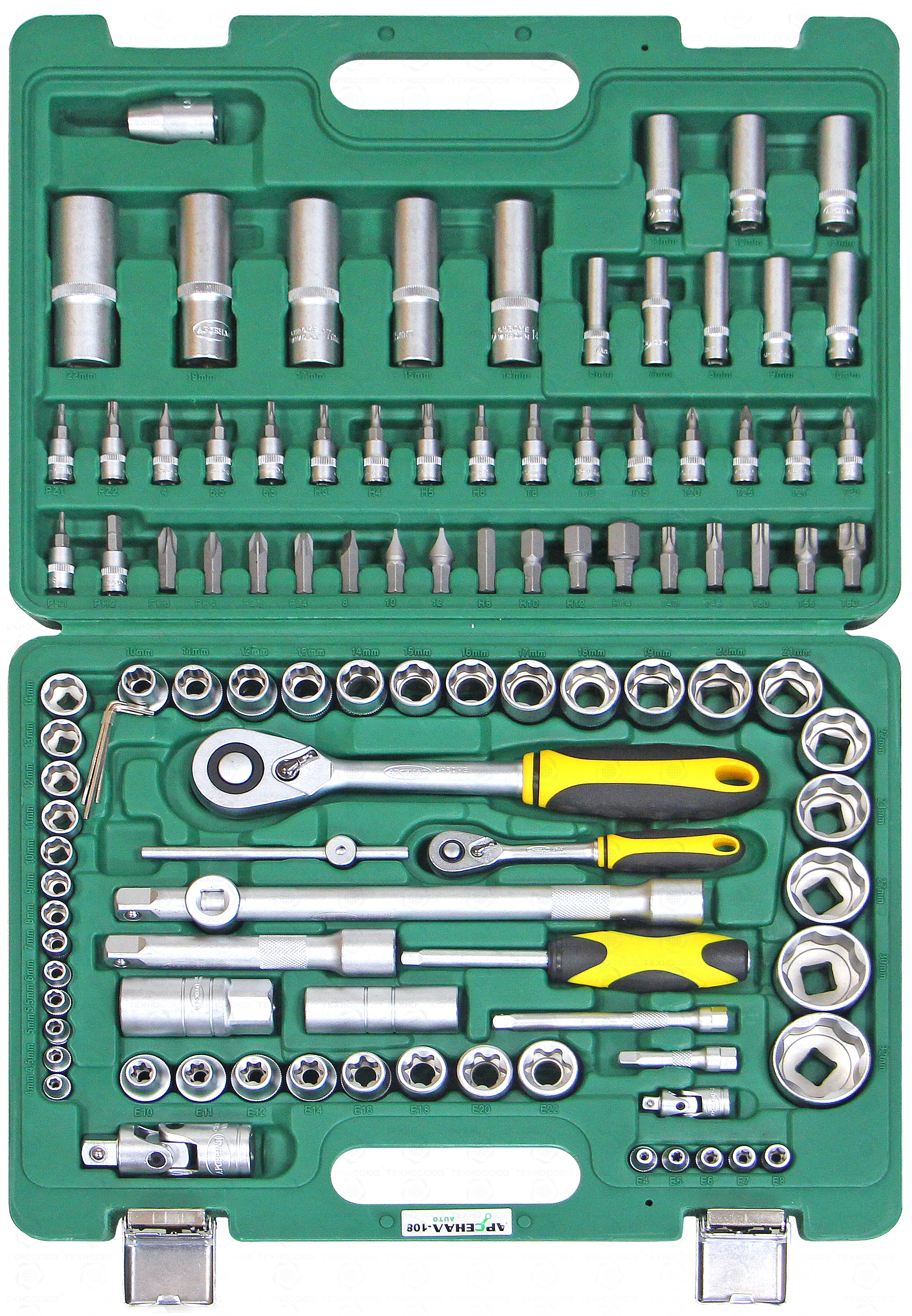 Набор инструментов 108 предмета AUTO Арсенал AA-C1412L108 очень часто выбирают профессионалы для ежедневного использования в условиях автосервиса. Широчайший подбор головок, в том числе глубоких, а также бит и бит-вставок позволяет работать практически со всем распространенным крепежом, который можно встретить в автомобиле и в средствах малой механизации. Сталь, из которой изготовлен инструмент, легирована хромом и ванадием с нанесением никелевого покрытия. Крепкий кейс из ударопрочной пластмассы. Наборы инструментов Арсенал имеют пожизненную гарантию. Инструмент Арсенал - Специально разработан для Российских условий!!!