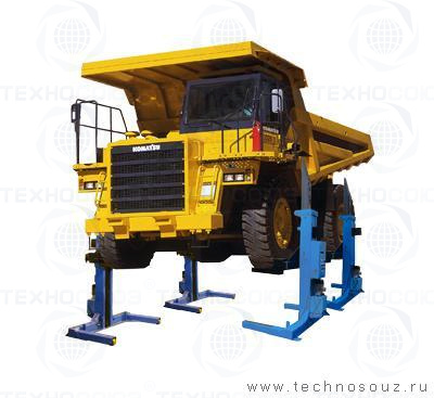 г/п 50 тонн. Четырехстоечный. Подкатной. Электрогидравлический с нагрузкой на каждую стойку 12,5 тонн. Подъём за колёса для проведения ремонта аэродромной, карьерной, дорожной, строительной техники с наружным диаметром покрышек колёс от 800-1800 мм, и шириной до 500 мм. Гидроцилиндры подъёмника оснащены парашютными клапанами, препятствующими резкому опусканию кареток подъёмника при повреждении гидравлической системы. В комплекте: 2 страховочными стойки + тележка для перекатывания стоек.