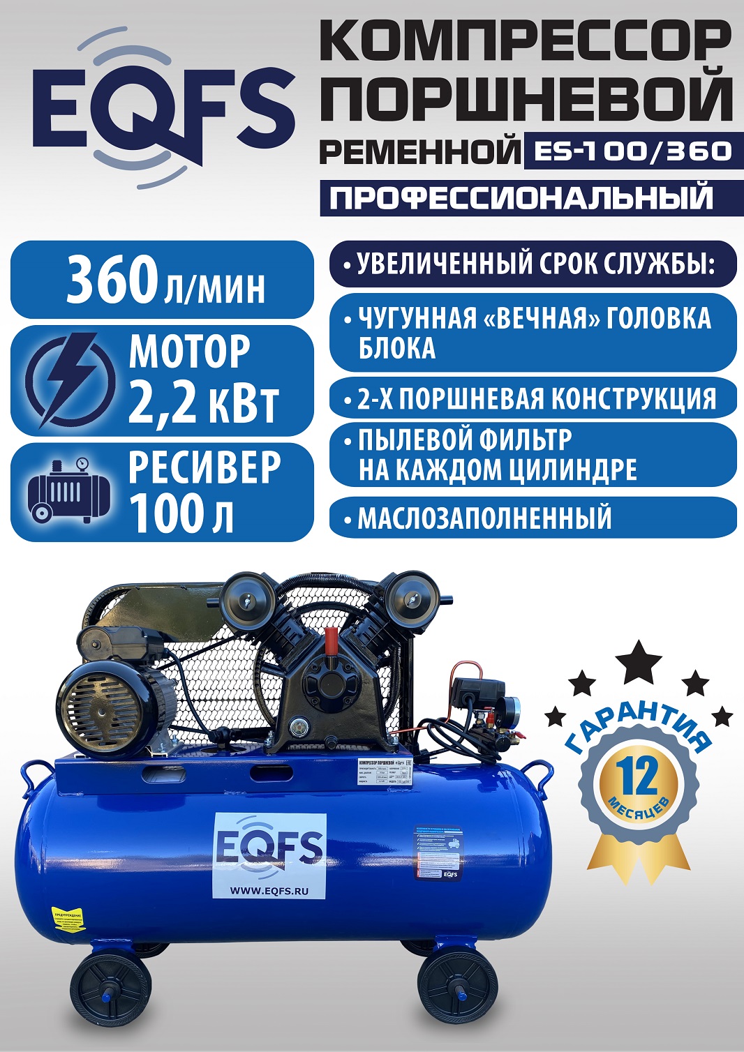 + Поршневой компрессор трёхцилиндровый производительностью 360 л/мин, ресивер 100 л.