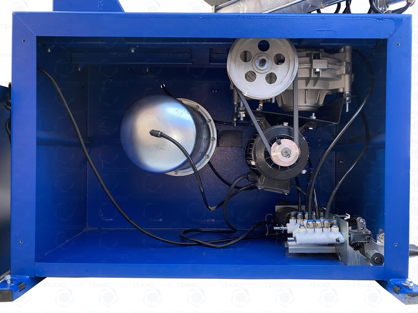 Регулятор давления с встроенным влагоотделителем исключает попадание воды в пневмосистему станка, что предотвращает коррозию и попадание влаги в колесо. Это особенно важно в условиях пониженных температур.