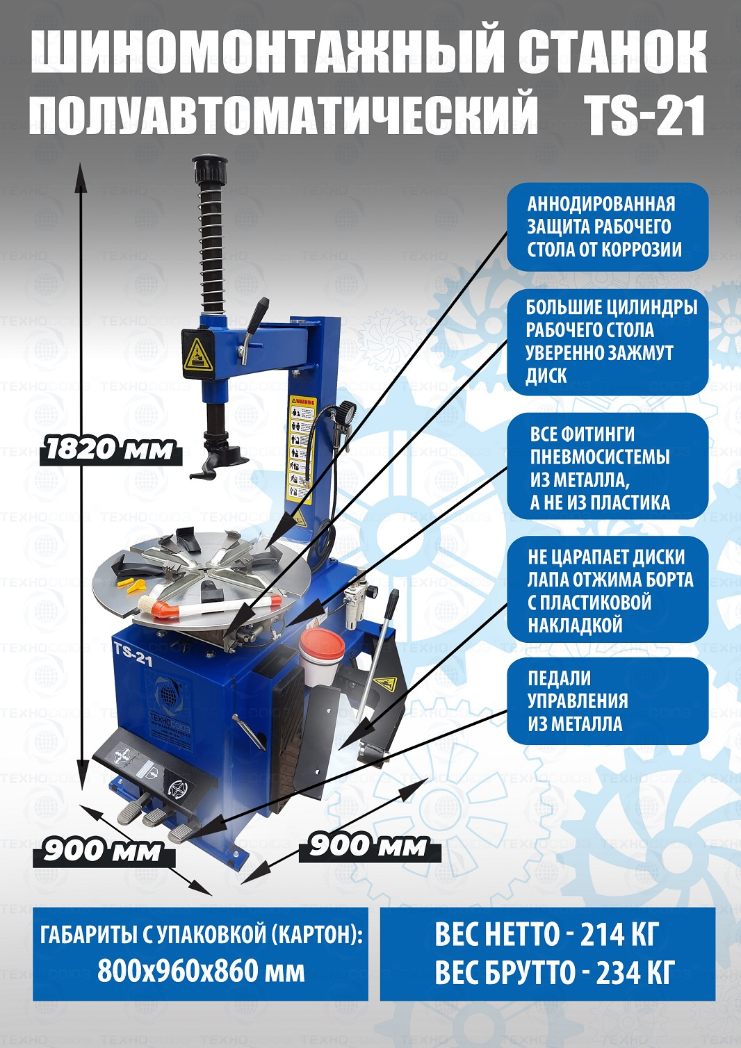 Шиномонтажный станок предназначен для монтажа и демонтажа шин легковых автомобилей, внедорожников и легких грузовиков с размером колес от 11 до 20”.