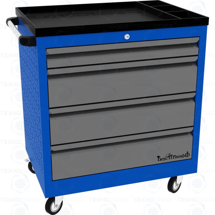 Тележки инструментальные серии PROFFI 795 предназначены для использования на предприятиях любого профиля занятых ремонтом и изготовлением различной продукции. Тележки изготовлены высотой 795 мм что позволяет размещать их под верстаками и рабочими столами серии PROFFI, что позволяет сэкономить рабочее пространство помещении. На боковые стенки инструментальной тележки нанесена перфорация размером 25х25 мм и диаметром отверстия 8 мм, что позволяет устанавливать на них навесной инструмент или крючки. Наибольшей популярностью тележки инструментальные пользуются в сфере авторемонта и обслуживания автомобилей. Тележки имеют выдвижные ящики на шариковых телескопических направляющих полного выдвижения с фиксацией в закрытом положении, предотвращающее открывание при передвижении тележки. Ящики имеют центральный замок, который позволяет ограничить доступ посторонних лиц к содержимому ящиков. Тележка инструментальная изготовлена из высококачественного металла ведущих Российских производителей, покрашена порошковой краской производства Германии, имеет итальянскую фурнитуру. Тележки для инструмента оснащены двумя не поворотными колесами диаметром 100 мм, одним поворотным и одним поворотным со стопором, которое фиксирует тележку и предотвращает непроизвольное скатывание.
