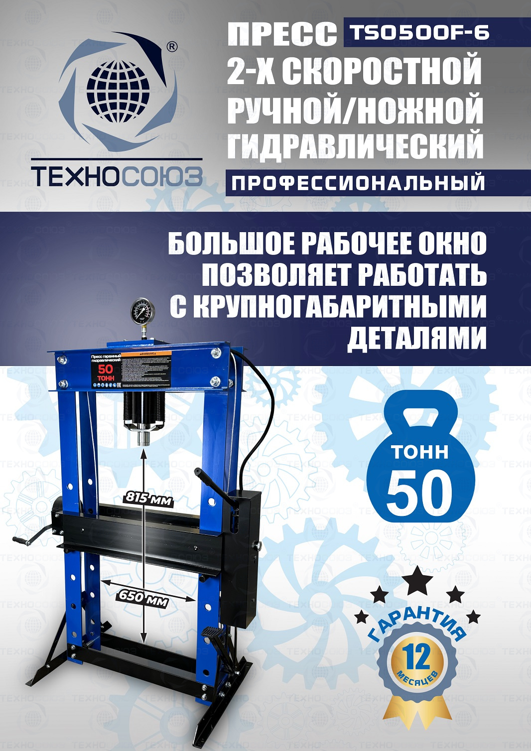 TS0500F-6 Пресс гидравлический ручной/ножной, 50 тонн