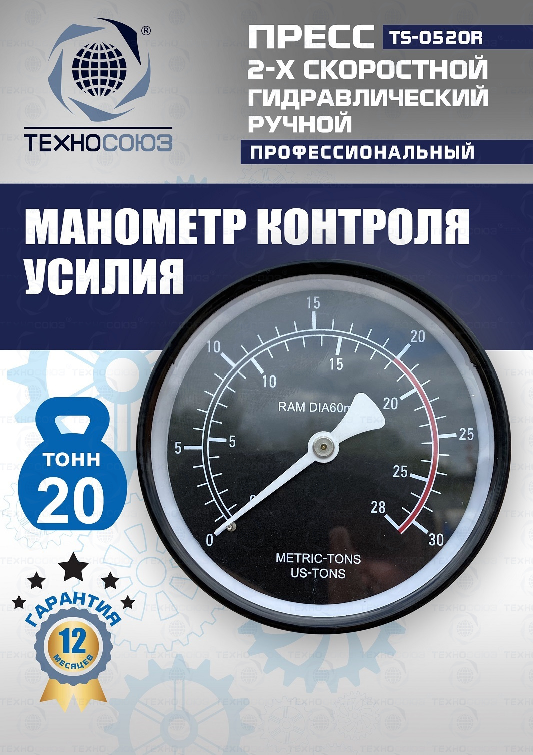 · Пресс укомплектован гидравлическим ручным насосом с максимальным усилием 20т.