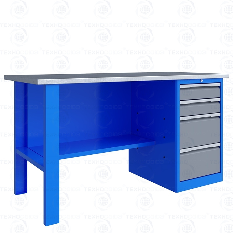 Тумба верстака - сварная. Ящики в тумбе устанавливаются на шариковых телескопических направляющих полного выдвижения. В тумбе P4 установлено два малых и два больших ящика. Внутренние размеры малых ящиков (ВхШхГ), не более: 103 х 397 х 520 мм. Внутренние размеры больших ящиков (ВхШхГ), не более: 222 х 397 х 520 мм. Тумбы с ящиками снабжены общим центральным замком с поворотом ригеля 180 градусов и подпружиненной тягой. В комплекте два ключа.